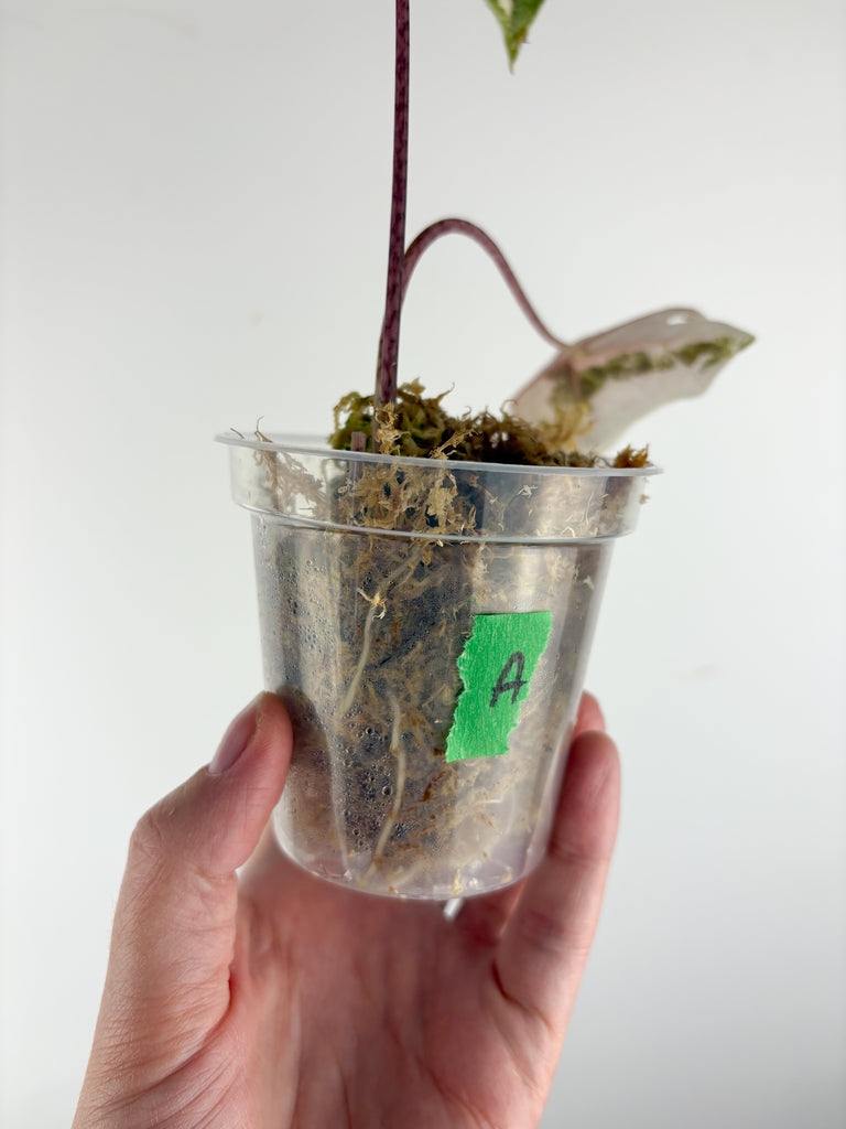 Alocasia pseudo sanderiana pink variegated A